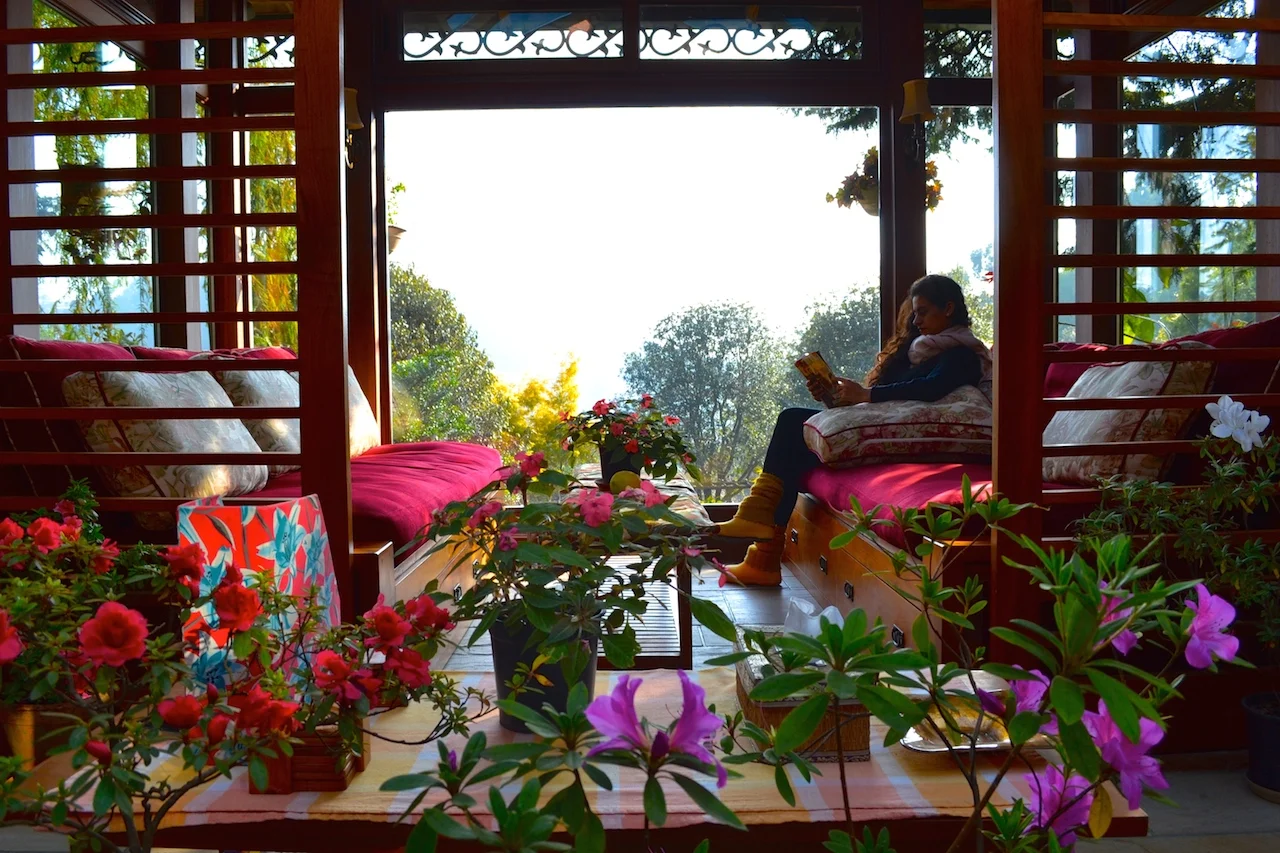 Owned by Uttam and Shalini Dave, a sweet couple from Delhi, the house is a beautiful space full of flowering gardens, lush greenery, warm and cosy rooms and a breathtaking glass observatory, where travellers can sit back and enjoy lush green views of the surrounding mountains and forests.