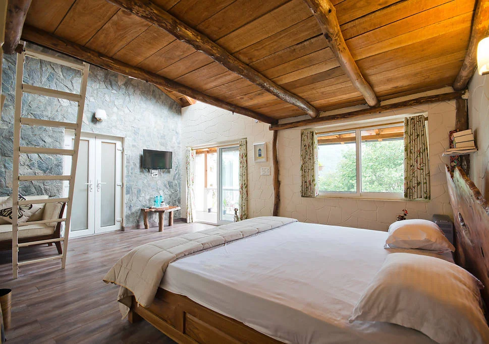 This charming wood and stone cottage is a summer home to Oli and Rupam, a sweet couple from Delhi. Passionate about art and architecture, they constructed this beautiful cottage with a lot of love and effort, which is evident is every part of the house.