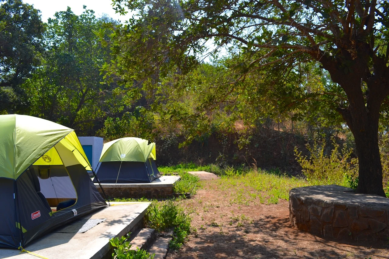 The campsite is the creation of a sweet family from Mumbai. The owners, Annabelle and Clement, run a homestay on the same plot and have added the campsite as a new addition to their land.